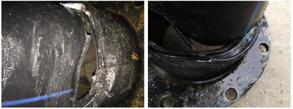 在探测过程中,经过反复确认后,在农田中发现*条DN400,埋深约1.5米的水泥管道存在疑似漏点。经现场开挖发现, 漏点为DN400主管与DN160 PE分支管接口处的法兰松动脱落导致漏水发生,初步分析原因为施工质量问题。