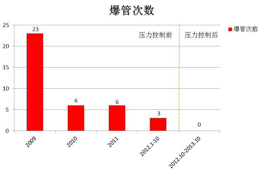 另外,区域压力控制的实施,也降低了该小区爆管的风险。根据供水公司相关部门提供的记录,在2012年10月之前的连续两年内,在该小区发生的爆管事故每年多达6次,而在实施区域压力控制之后至今的1年时间里,还没有发生爆管事故。