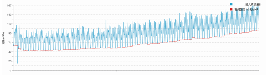 自2018年5月开始,A-1区的夜间最小流量和日水量出现逐步增加的趋势,分区漏损评价指标数值不断上升。经分析从4月23日至7月28日,夜间最小流量增长115%,日水量增长86.7%, A-1区内漏损率上升6%,分区内的居民小区漏损率未出现明显增加趋势,通过上述结果综合判断:A-1区的主管道疑似出现新增漏失。基于分析成果,水联网委托邹城市益展商贸有限公司对该区内的主管道进行主动检漏工作。