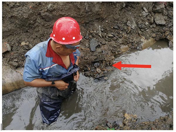 由于现场环境复杂,水联网决定采取分段关闸和检查明漏的手段缩小漏点的范围,发现一个废弃的排水井中有大量的清水。然后,采取主动检漏手段确定疑似漏点。最后经过确认发现在某个小区的西南角DN400管道上存在疑似漏点。经过水司开挖验证,该管道上存在一个约5cm的裂口,而漏失的水量都排到了小区内一废弃的排水井中,漏点范围与系统分析结果一致。