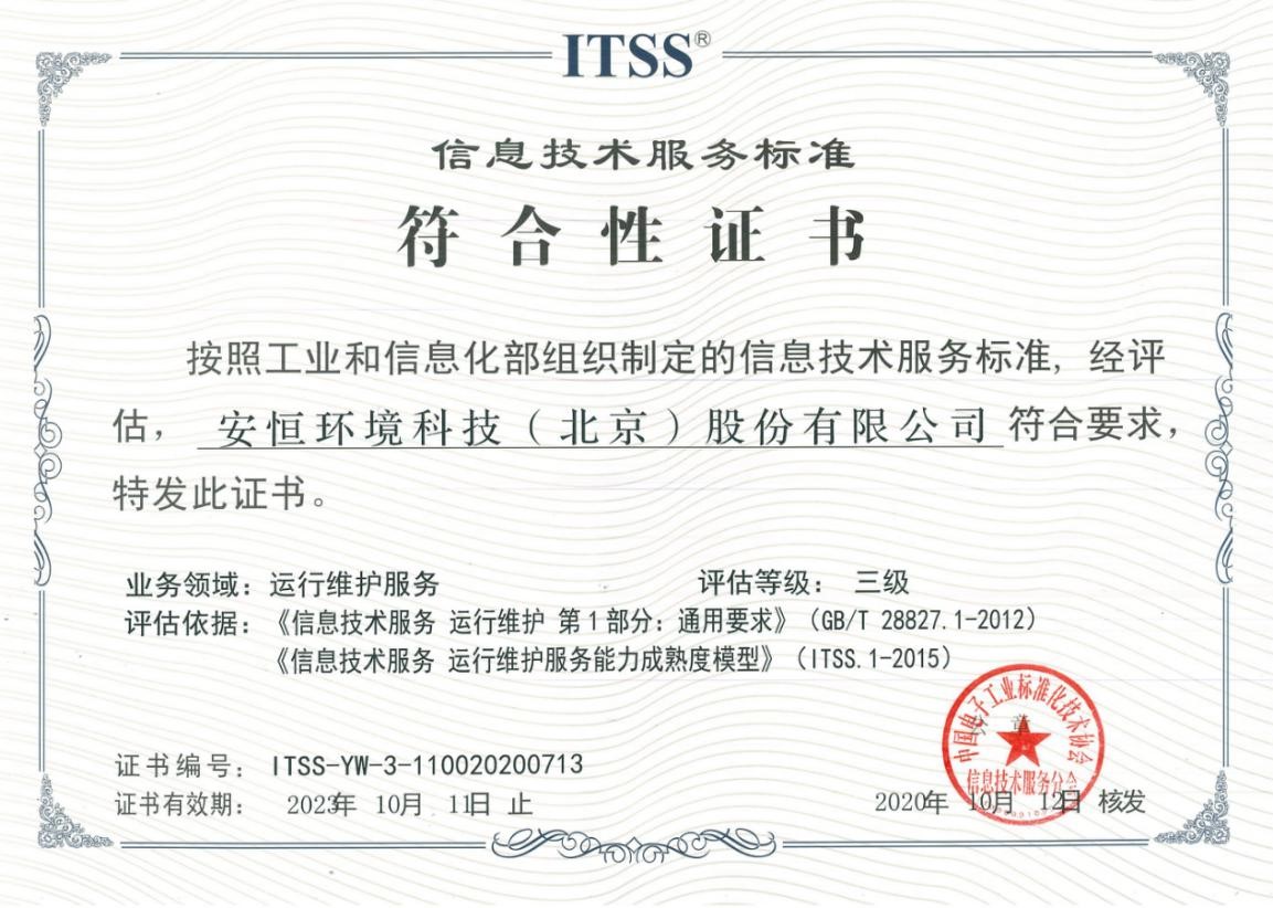安恒集团获得 ITSS信息技术服务标准符合性证书